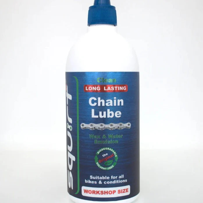 Squirt Chain Lube is a unique chain lubricant – it contains waxes and water in emulsion form that stays clean, lasts long and extends drive train life.