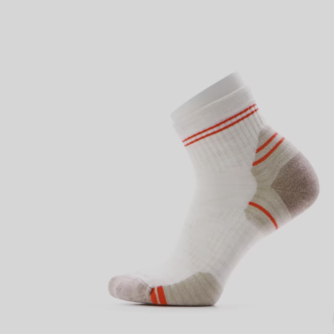 Support your feet through all types of trails in our Women's Hike Targeted Cushion Ankle Socks. Feel targeted cushioning where you need it most, with a 4 Degree™ elite fit system for a dialed-in, performance-oriented fit, plus Indestructawool™ technology designed for added durability and a Virtually Seamless™ toe for enhanced comfort. Breathable mesh zones help keep your feet feeling good, while the comfort welt makes sure these socks stay put in your boots.