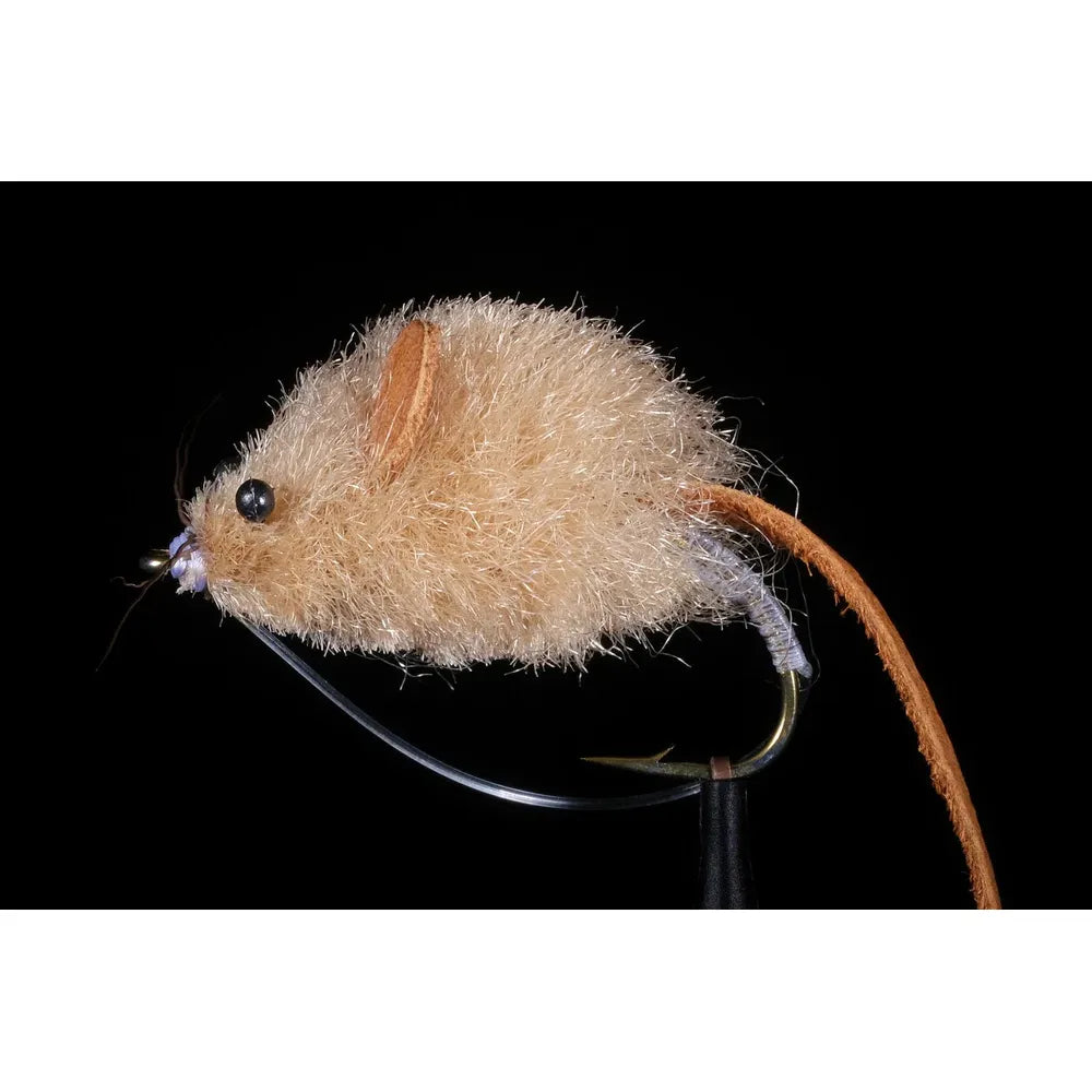 The Manic Tackle Mini Mouse Tan #6 is a realistic surface mouse fly designed to trigger aggressive trout strikes. Ideal for rivers, streams, and freshwater fishing.